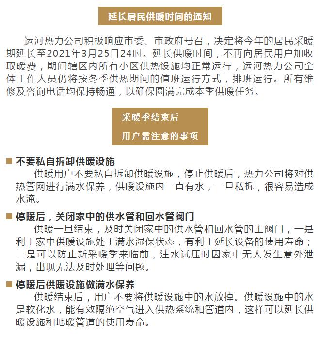 運(yùn)河熱力關(guān)于延長居民供暖時間的通知